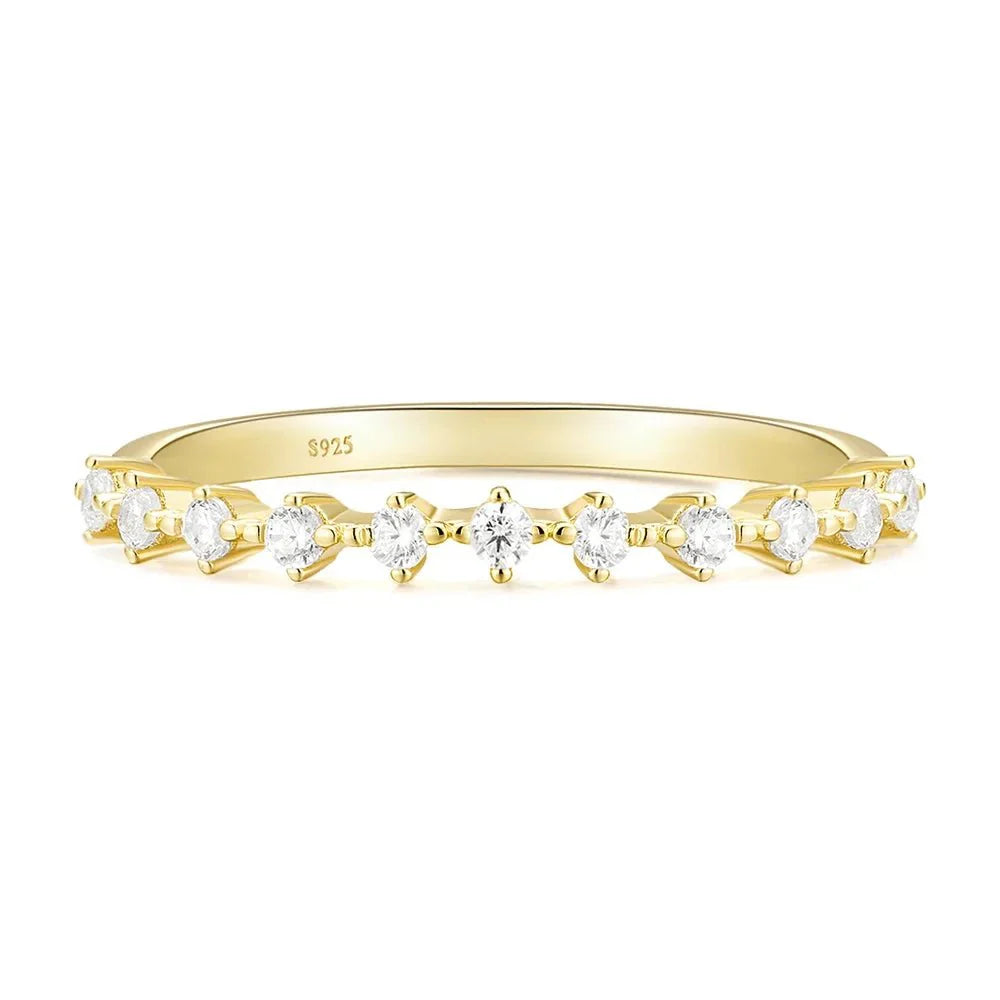 Add a touch of understated luxury to your jewelry collection with our 925 Sterling Dainty Eternity Ring. Perfectly crafted with a series of brilliant round gemstones. this delicate piece is designed to catch the light and turn heads. Whether you're accessorizing for a formal event or elevating your everyday look. this ring offers effortless sophistication.