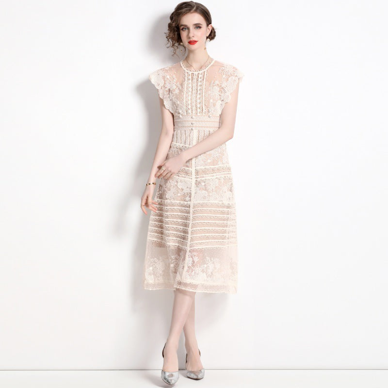 This A-line sleeveless silk lace MIDI dress is perfect for anyspecial occasion! The delicate lace fabric and stylish silhouettewill make you feel confident and beautiful. This dress is alsocomfortable and versatile. so you can wear it to any event.