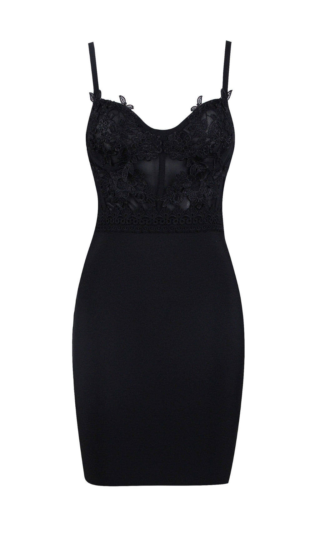 Sexy Strap Bandage Dress. The top half of this dress is a combination of mesh and floral lace weave. Black see-through temptation. The bottom half is the bandage material. tight fit. Accentuate the plump hips. Suitable for wearing occasions: romantic date nights. stylish dinner dates. cocktail bars. party nights.