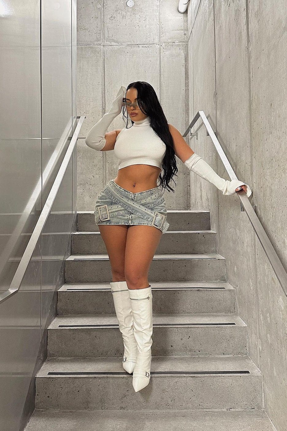 Double belt mini denim skirt - Small waist? Big style! Step up your denim game with our Micro Belt Mini Denim Skirt - a mini skirt with a twist. featuring a stylish buckle detail.