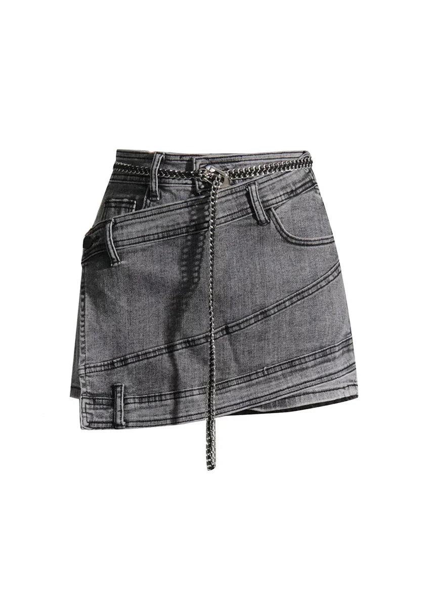 Black denim skirt - This little skort is a new spin on the classic denim skirt. with a wrap shape that adds a touch of style and timeless appeal.