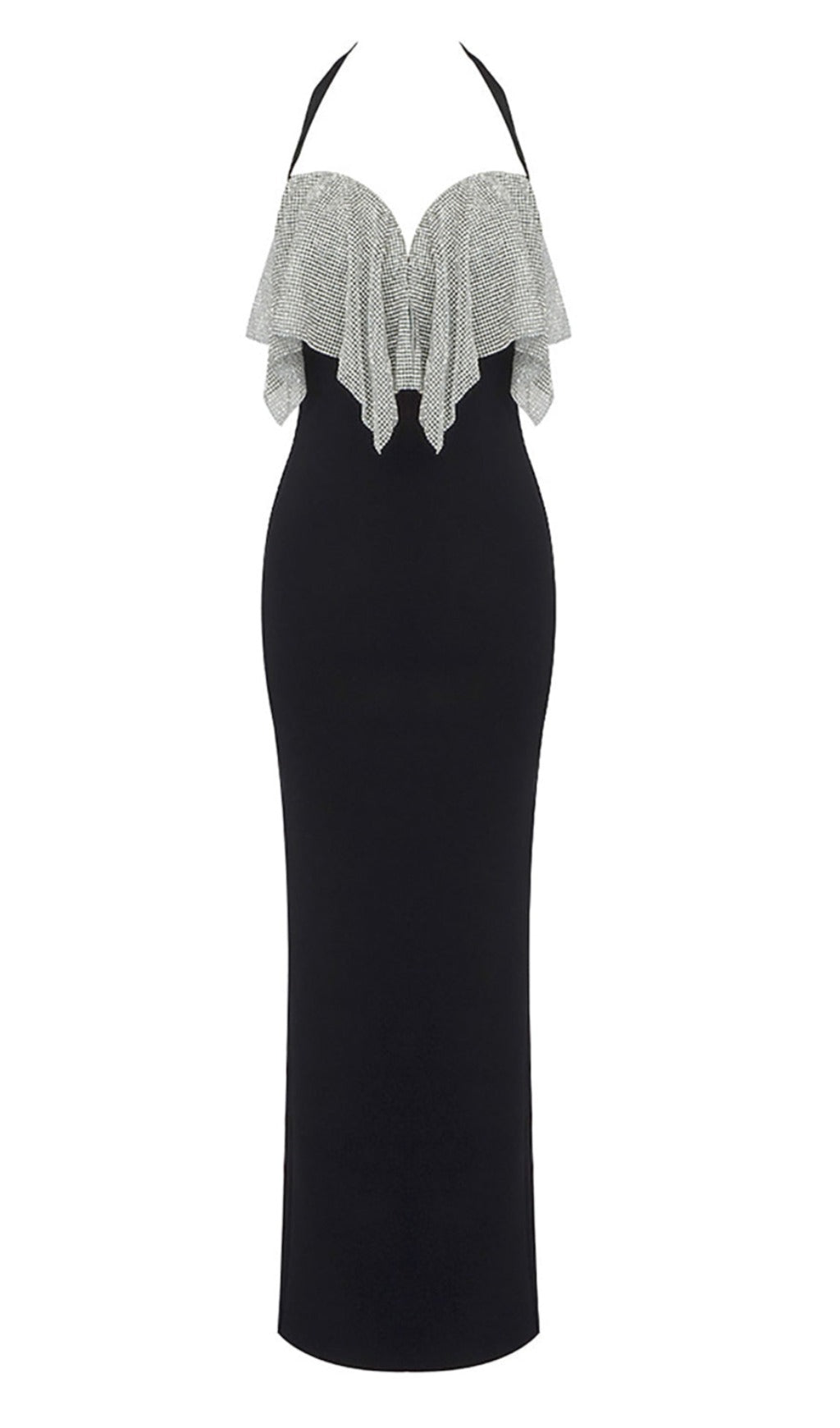 Black Halter Bandage CorseTeD Dress With Crystal Chainmail
