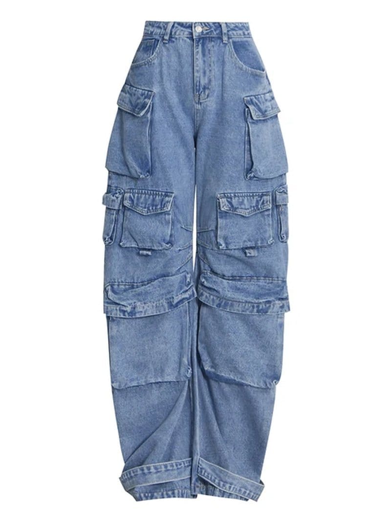 These Cargo Denim Pants for a comfortable and stylish fit. Their loose fit allows for easy movement. while their high waist design flatters any body type.