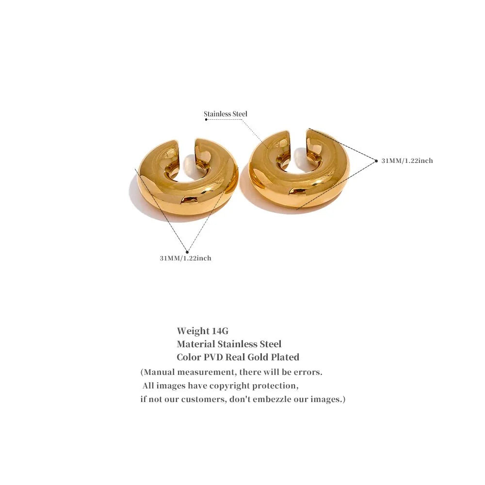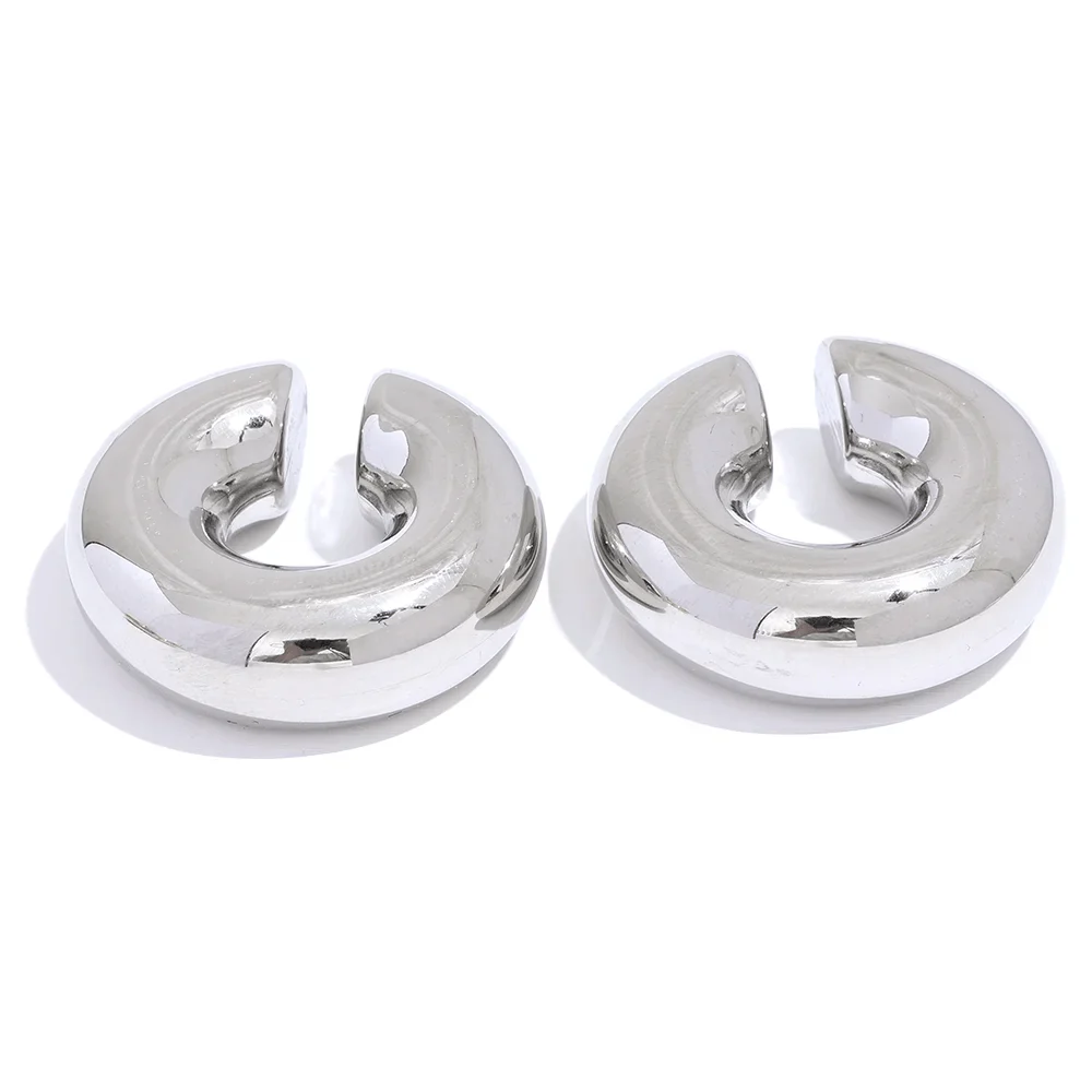 Add a touch of modern elegance to your accessory collection with our Chunky Ear Cuff Earrings. These versatile earrings strike the perfect balance between bold design and minimalist charm. making them an essential for everyday wear or special occasions. With their smooth. shiny surface and sleek. circular shape. these ear cuffs are sure to elevate your style effortlessly.
