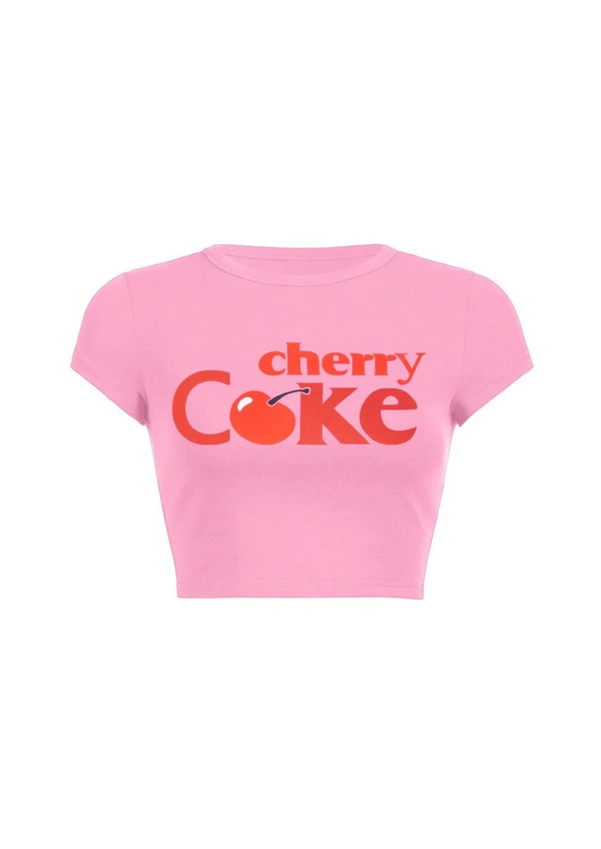 Turn heads this summer with the Cherry Coke Crop Tee perfect blend of nostalgic Y2K vibes and everyday cool. This trending baby tee. with its playful "Cherry Coke" design. brings an effortless pop of personality to any look. Whether you're hitting a festival. heading to a party. or just keeping it casual. this cropped t-shirt in multiple colors is your go-to for a fresh. fun style that channels that early 2000s aesthetic.