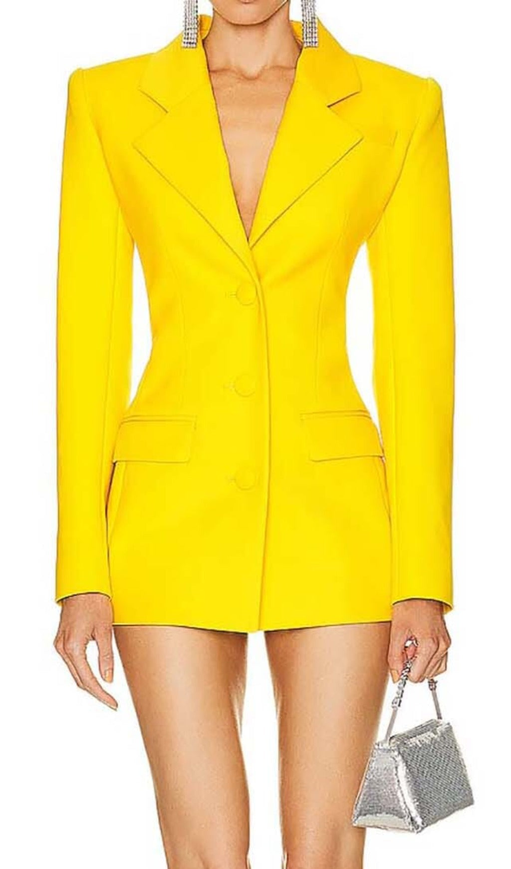 Crystal Open Back Jacket Dress In YelLow