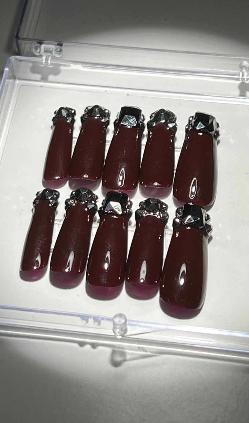 Crystal Wine Coffin Handmade Press On Nails - No glue. no fuss! Get an instant manicure with these long-lasting. easy-to-use nails. Perfect for any occasion. these press-on nails are sure to make your look smokin' hot!
