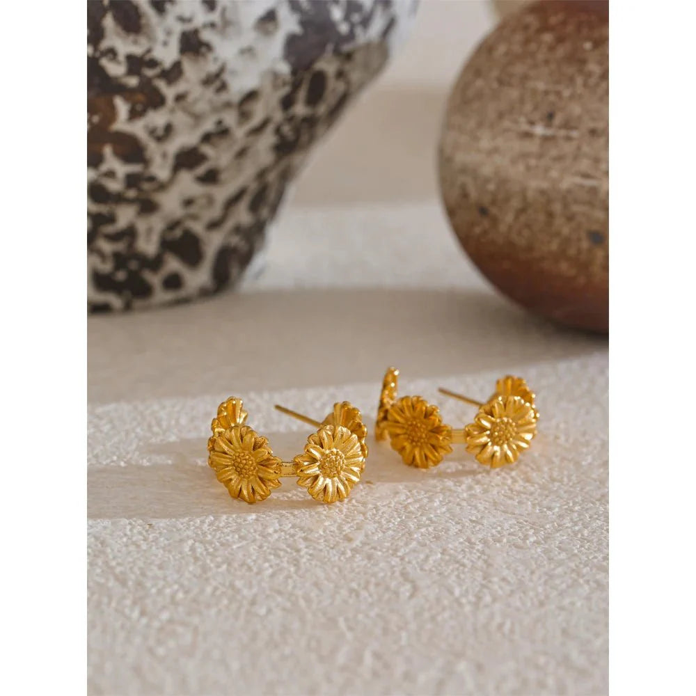 Turn heads with the Daisy Hoop Earrings. a stunning accessory that combines timeless floral elegance with modern design. Perfectly crafted to add a decorative yet refined charm to your look. these hoops are adorned with beautifully detailed daisy motifs. Whether you're dressing up for a special occasion or adding a feminine touch to your everyday style. these earrings are a must-have.