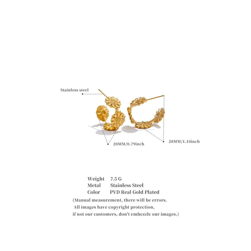 A3: The Daisy Hoop Earrings are medium-sized. making them versatile for both casual and formal wear. They're lightweight. so you can wear them comfortably all day long.