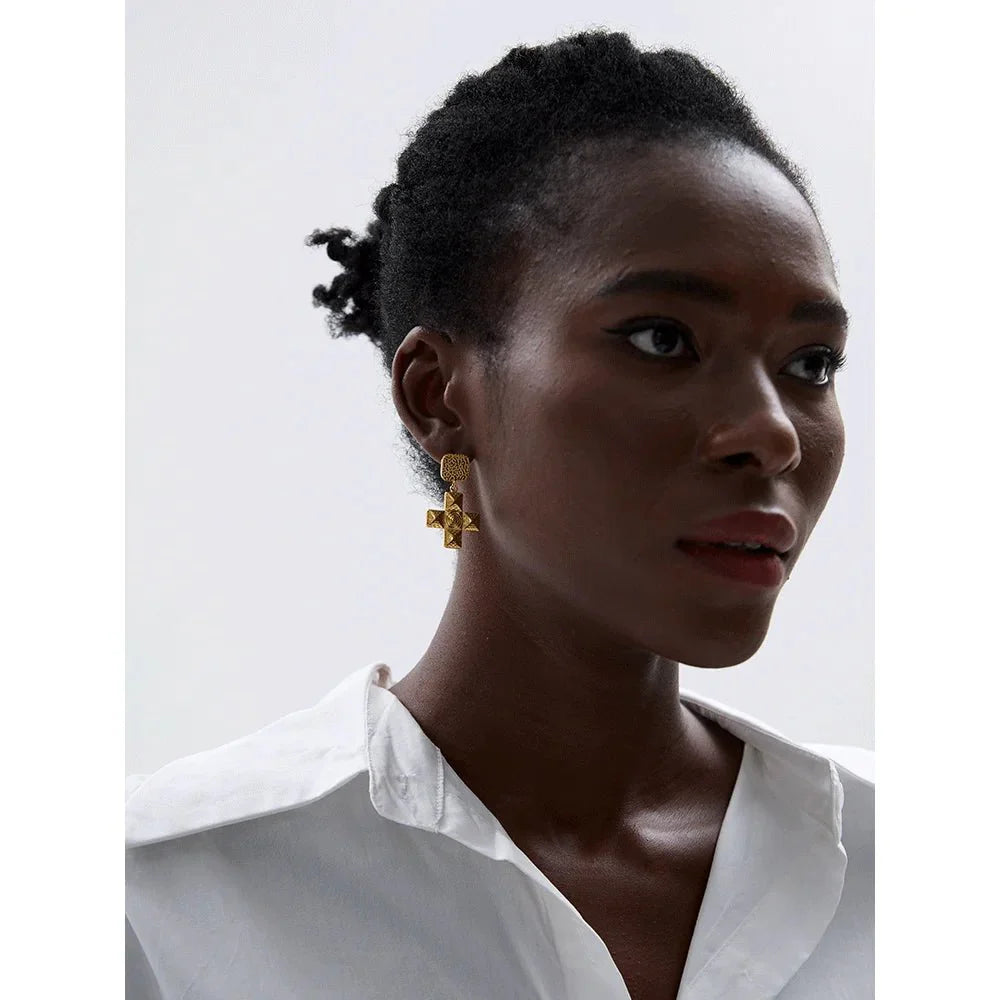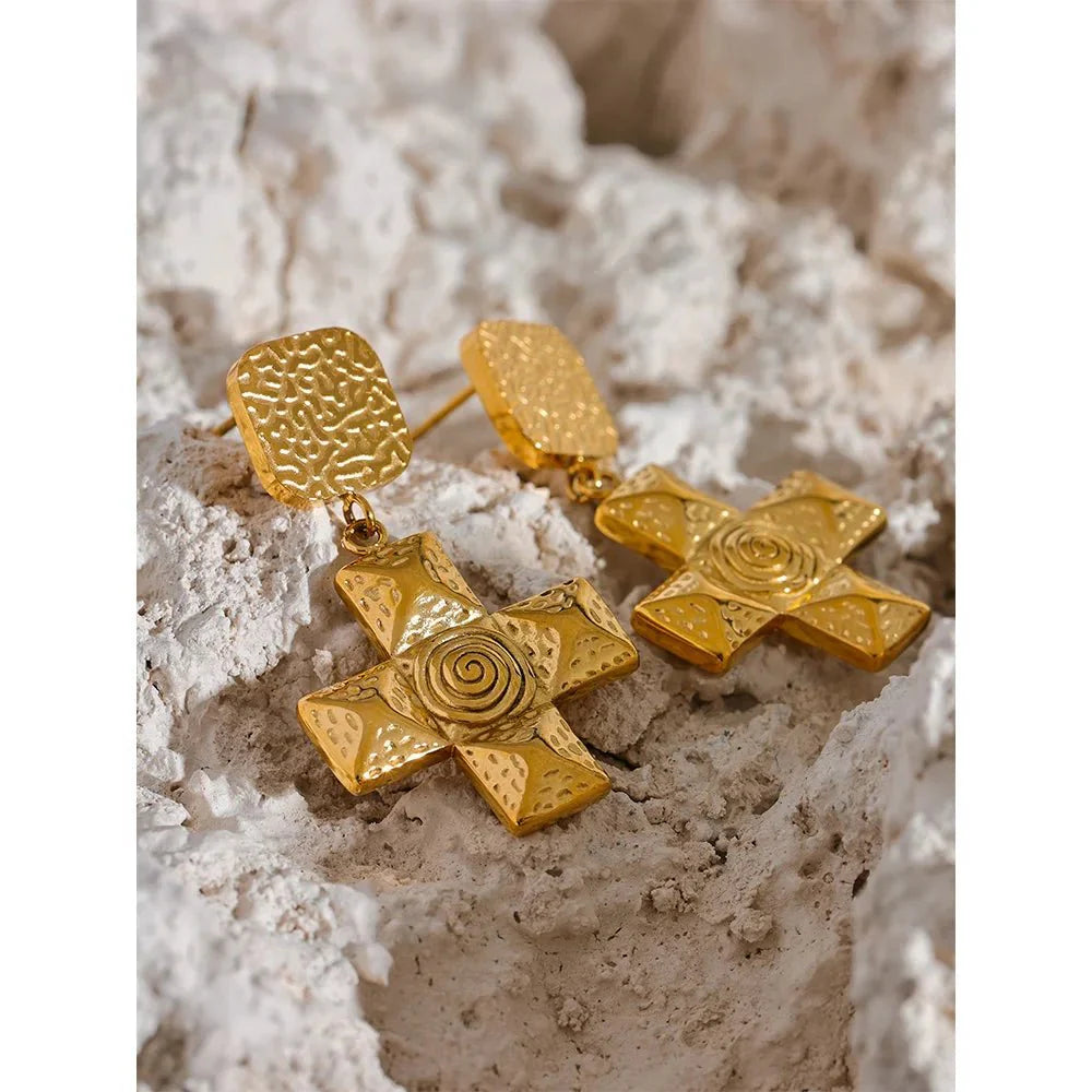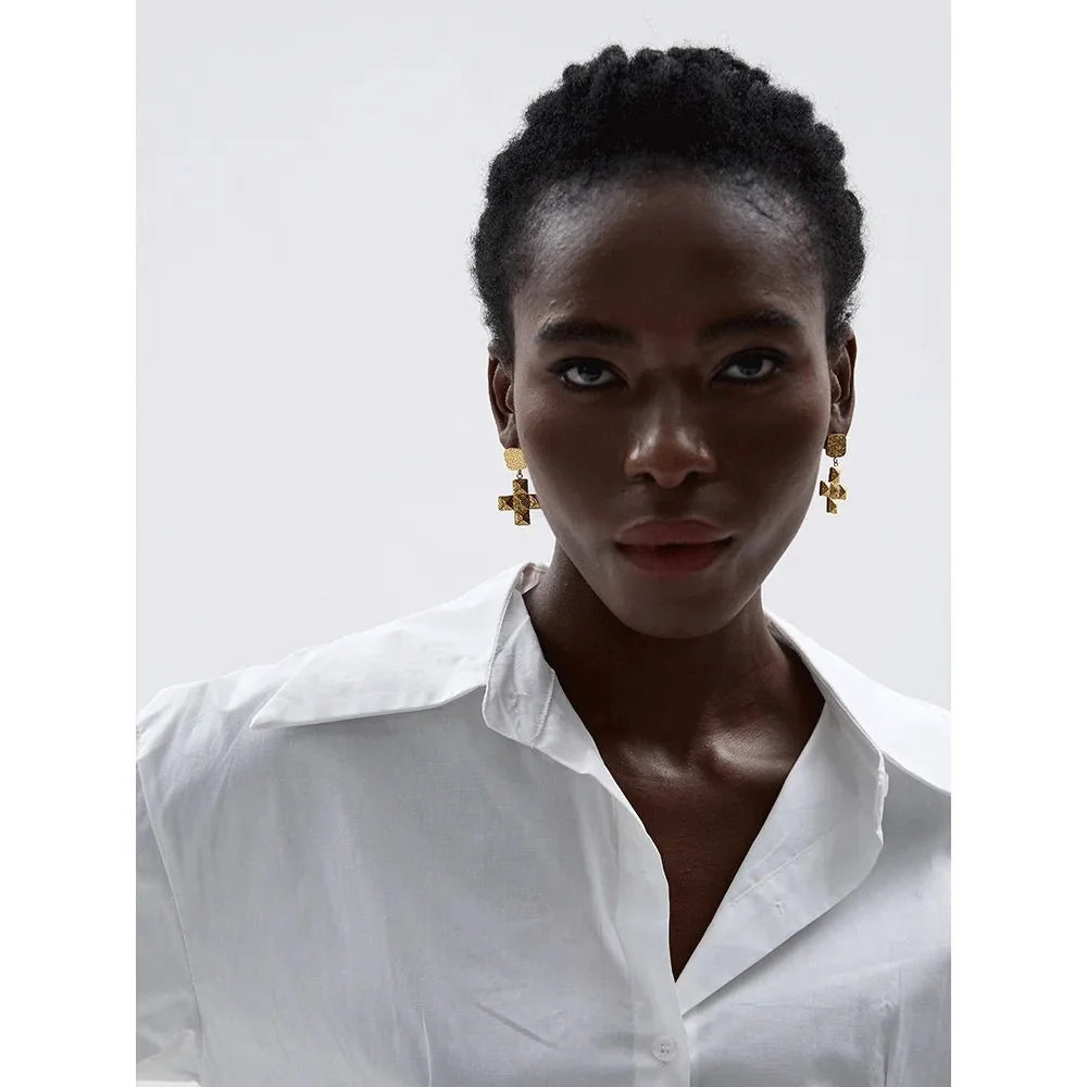 Discover a blend of elegance and symbolism with the Dangle Cross Earrings from Krzno. Designed to add a refined touch to any outfit. these earrings feature delicate cross pendants that dangle gracefully. offering both style and meaning. Perfect for daily wear or special occasions. these earrings make a statement that is both chic and timeless.