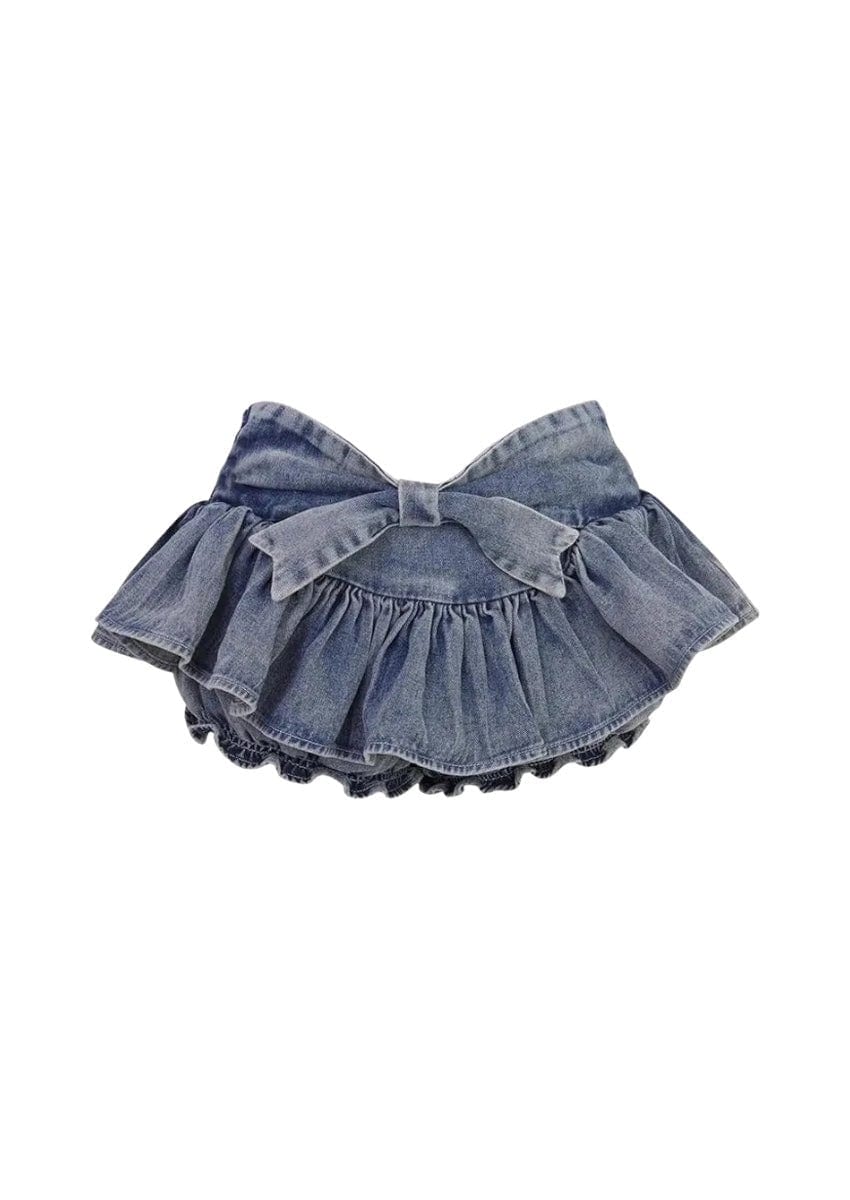 A: The Denim Ruffle Skort combines the chic style of a mini skirt with the practical comfort of shorts underneath. The ruffled hem adds a playful touch. while the denim fabric provides a structured. flattering fit. The feminine ruffles give movement and flair to your outfit. making it perfect for twirling around at any event.