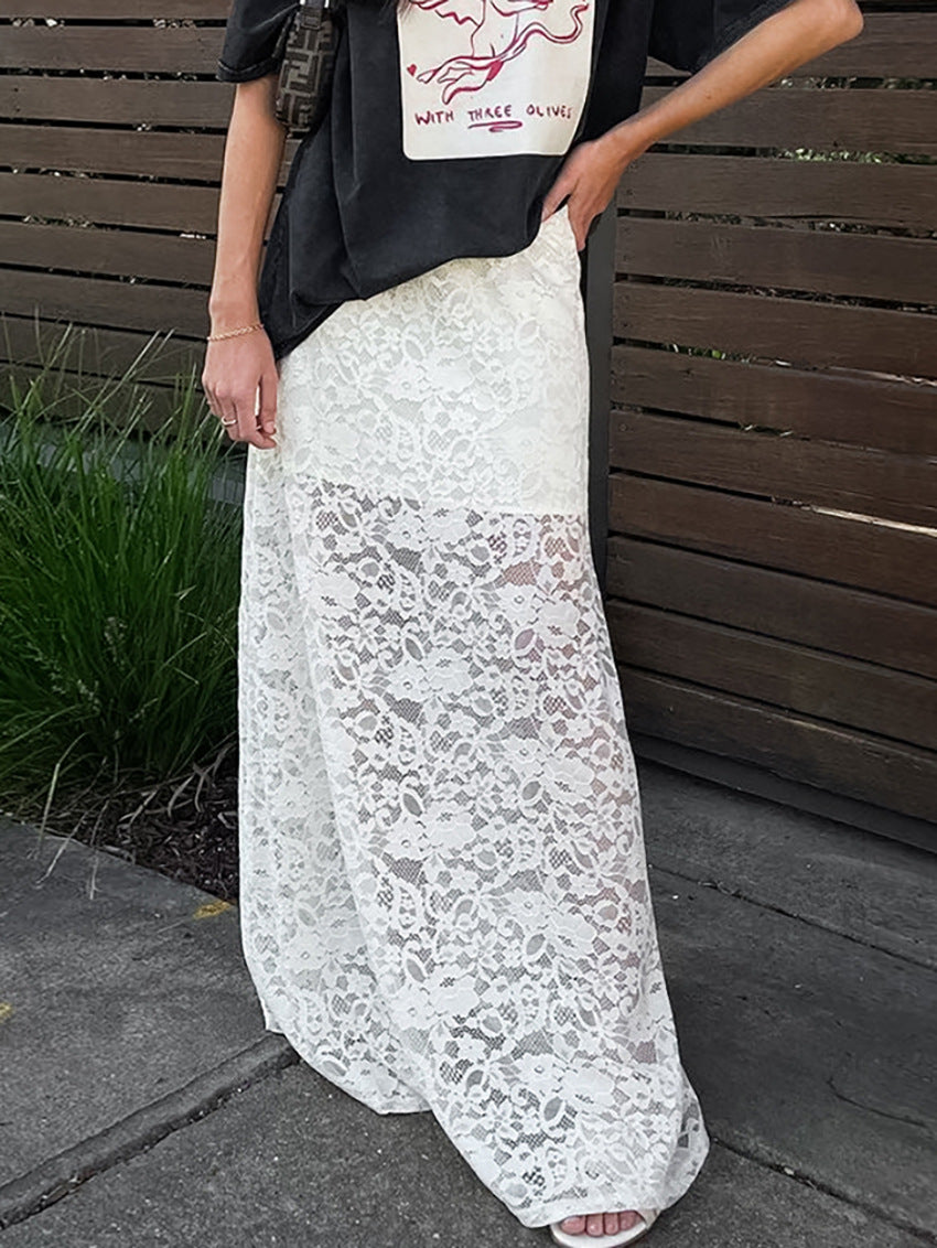 Elegant and Versatile Design: This white lace maxi skirt features a low-rise waist and ankle-length cut, perfect for adding a touch of elegance to any outfit. Ideal for both casual and formal occasions, this skirt can be paired with various tops to create a chic, versatile look.