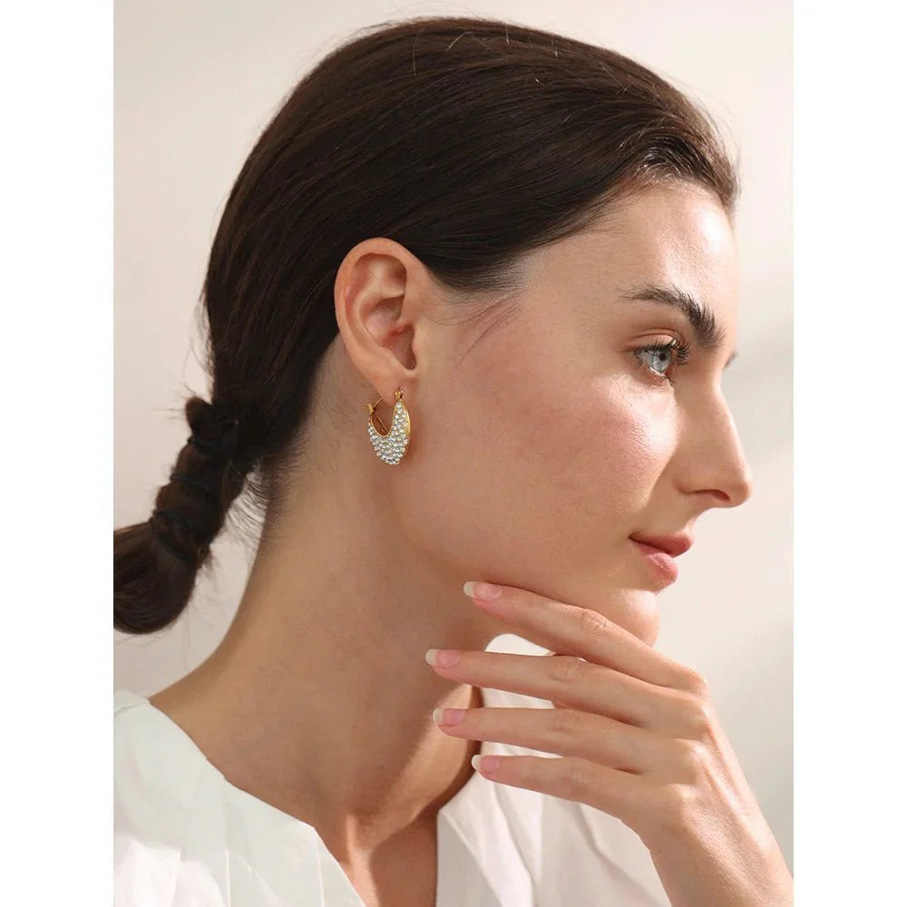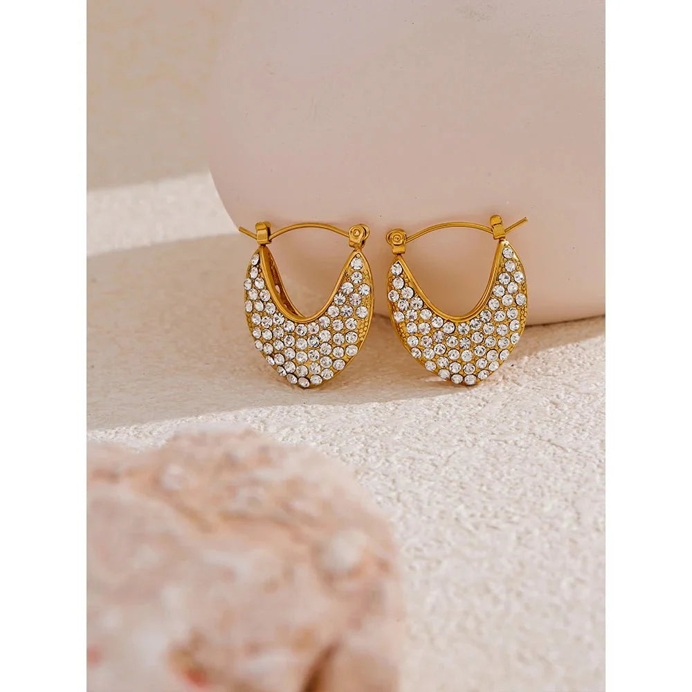 Turn heads with the Glistening Hoop Earrings. a dazzling blend of sophistication and modern elegance. Designed with a unique teardrop-shaped silhouette. these hoops taper gracefully from a wider base to a slender top. creating an ultra-flattering look. Adorned with rows of sparkling cubic zirconia. these earrings catch the light beautifully. making them the perfect accessory for any occasionrom glamorous evenings out to adding a touch of sparkle to your everyday style.