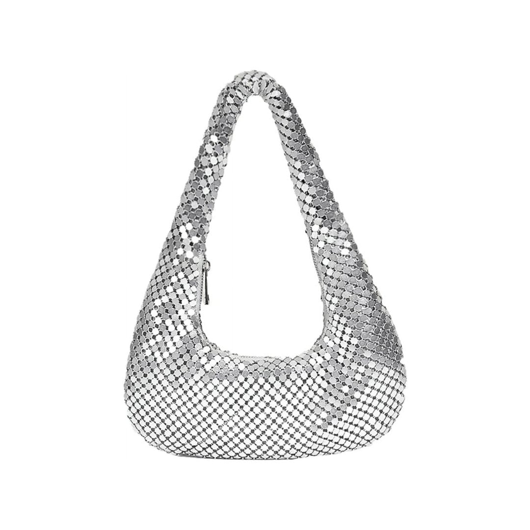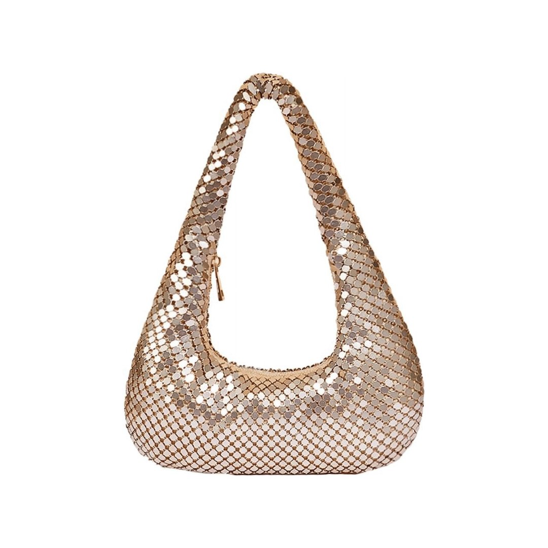 Shine bright at your next event with this Glittering Mesh Teardrop Shoulder Bag. designed to bring a luxurious touch to your outfit. Featuring a stunning metallic mesh exterior and a unique teardrop silhouette. this bag is the perfect accessory for glamorous nights out. special occasions. or upscale parties. The spacious interior ensures that you can carry all your essentials in style while keeping things elegant and chic.