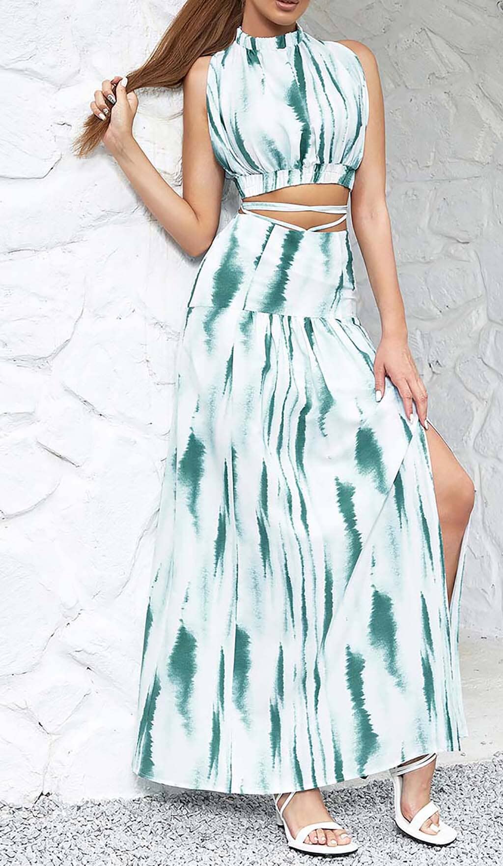 Halter Sleeveless Maxi Dress In MULTI-Color