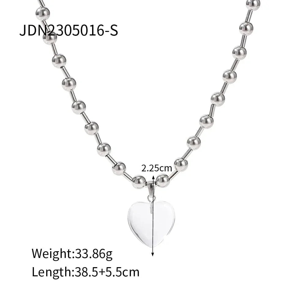 Ball Beaded Necklace with Clear Silver Heart Pendant