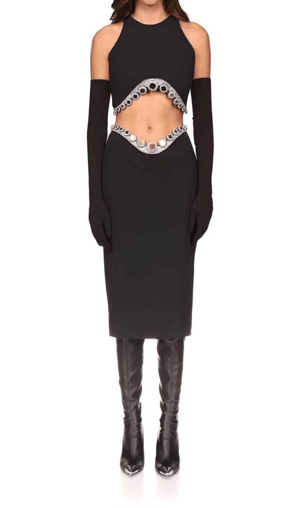 What could be more dazzling than this Jeweled Tentacle Two Piece? Be the talk of the town in this stylish swimsuit. The white jeweled tentacles will add some pizzazz to your beach look.