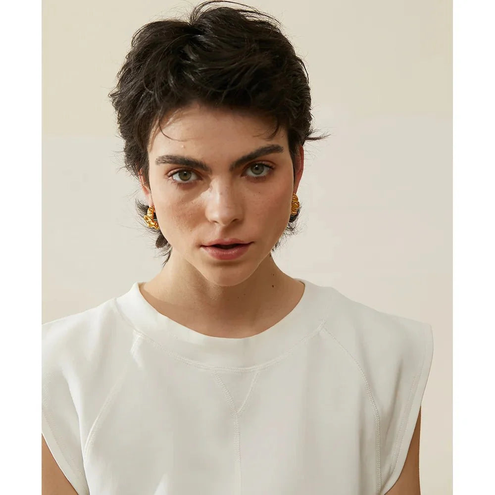 Make a statement with the Molten Aura Hoop Earrings. a stunning fusion of artistry and modern design. These gold hoops feature a unique. crumpled texture that catches the light beautifully. creating a molten. organic effect. With their shiny. reflective finish. these earrings add a touch of sculptural elegance to any outfit. making them the perfect accessory for trendsetters who love distinctive jewelry.