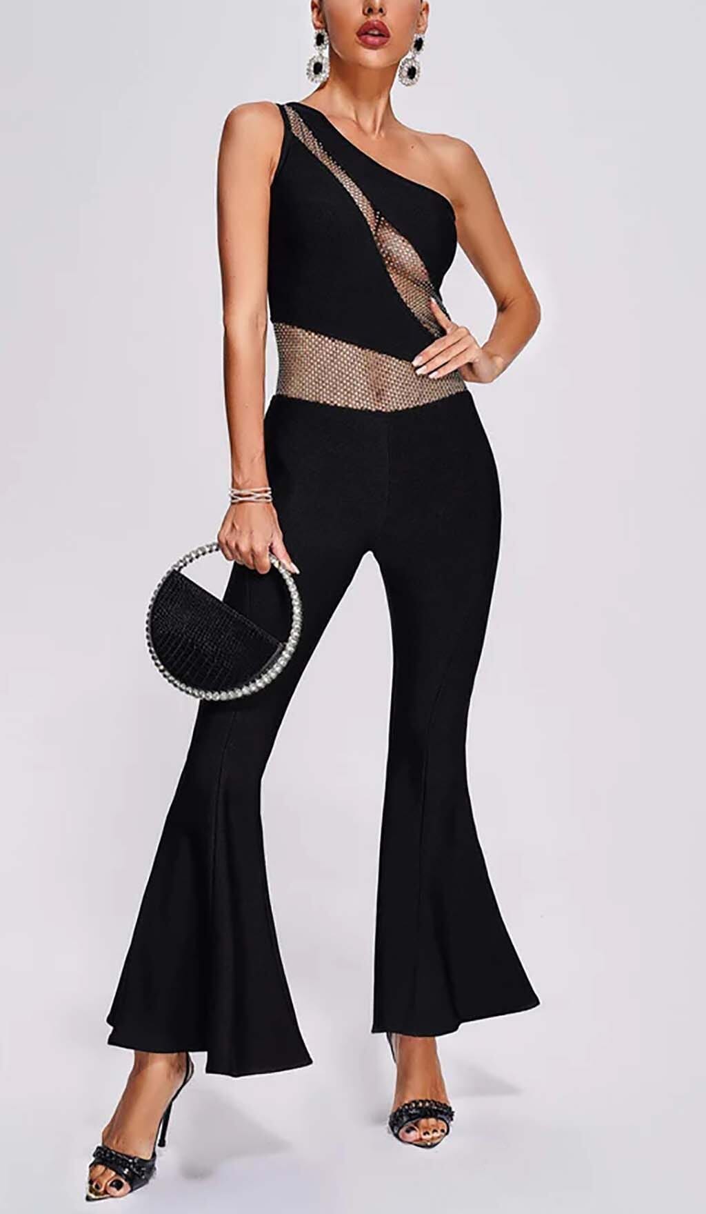 One-Shoulder FlAred-Leg Jumpsuit In Black