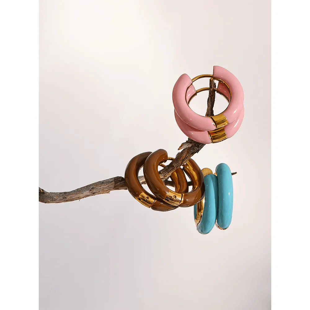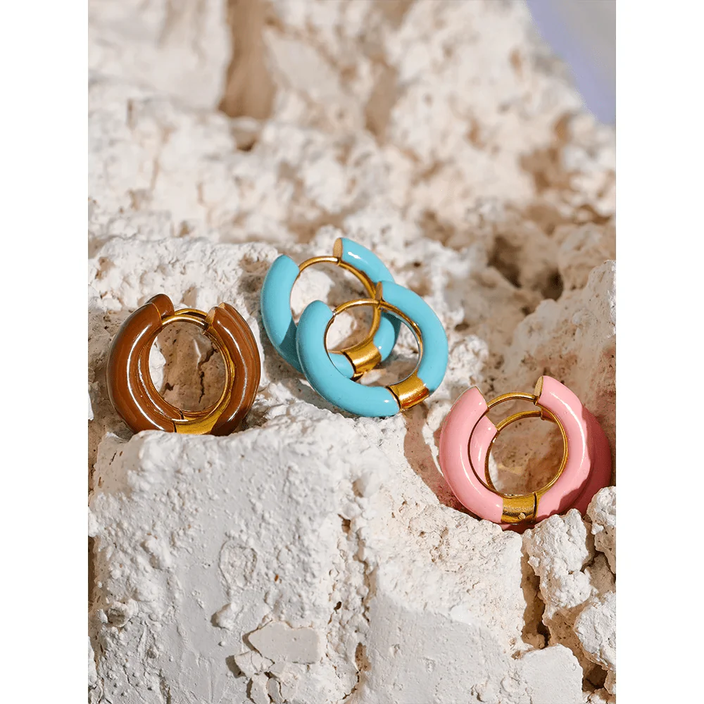 Add a pop of color to your jewelry collection with our Pastel Hoop Earrings! Featuring a perfect balance of soft pastel hues and gold accents. these hoops are designed to elevate any outfit with a touch of elegance. Whether you're dressing up for a night out or adding a stylish flair to your everyday look. these earrings are a must-have accessory.