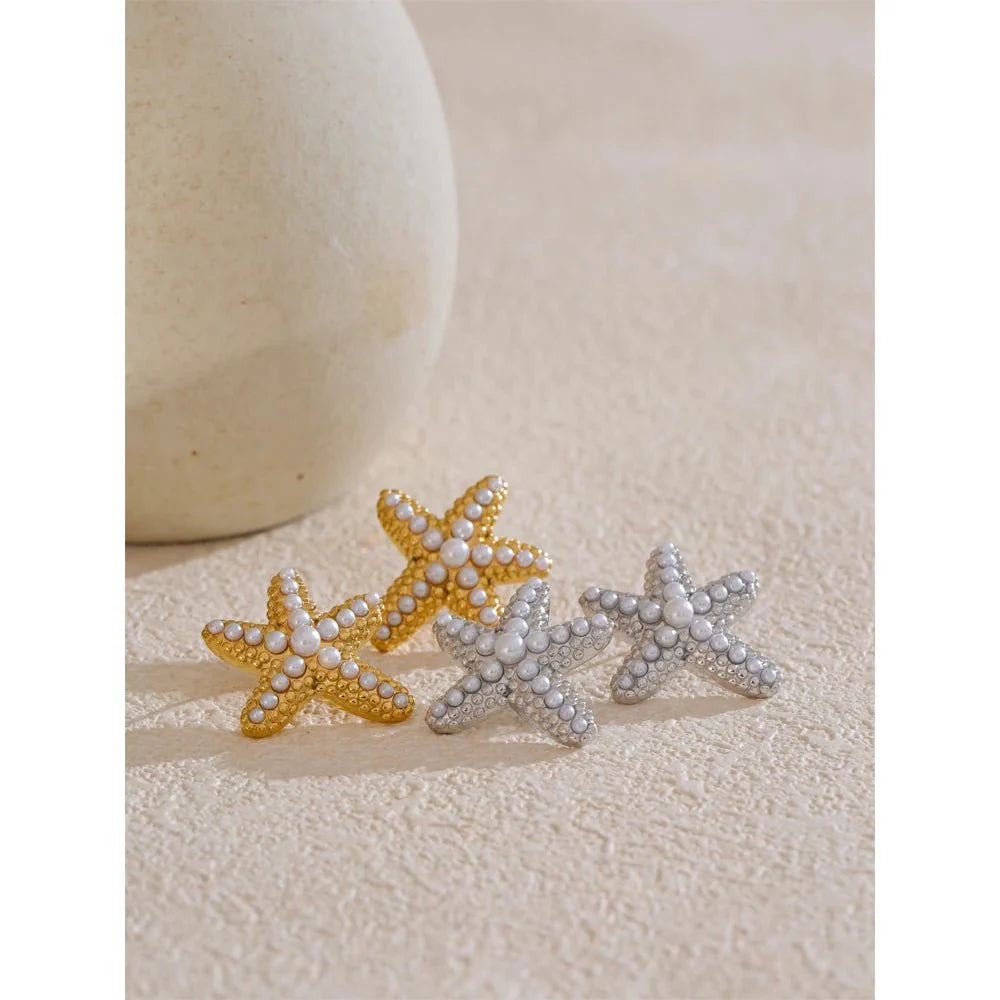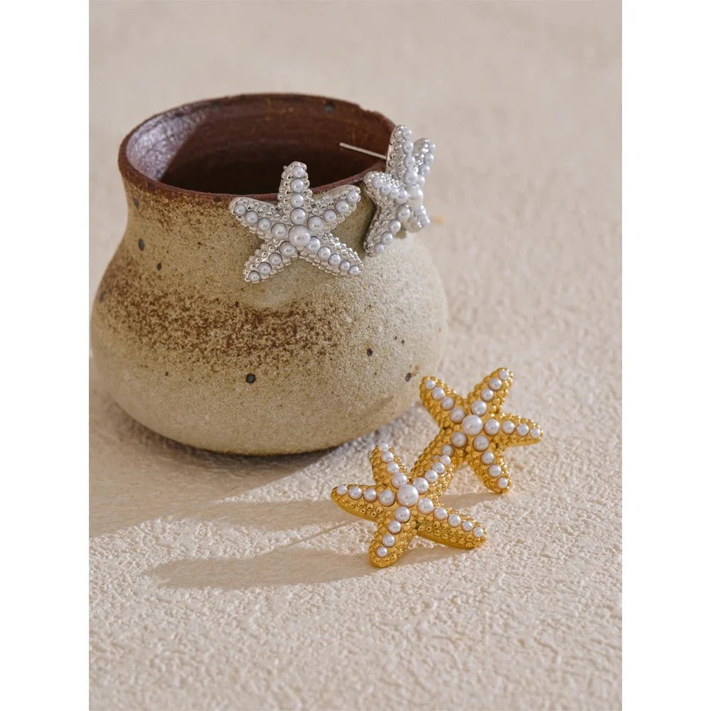 Add a touch of ocean-inspired elegance to your jewelry collection with our Pearl Starfish Stud Earrings. These stunning studs feature delicate starfish designs adorned with shimmering simulated pearls for a sophisticated and timeless look. Perfect for beach lovers. mermaid hearts. or anyone who wants to infuse a bit of seaside charm into their style!