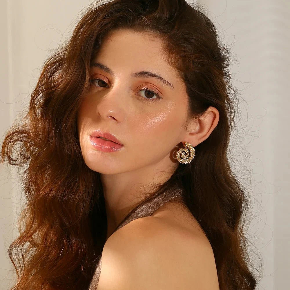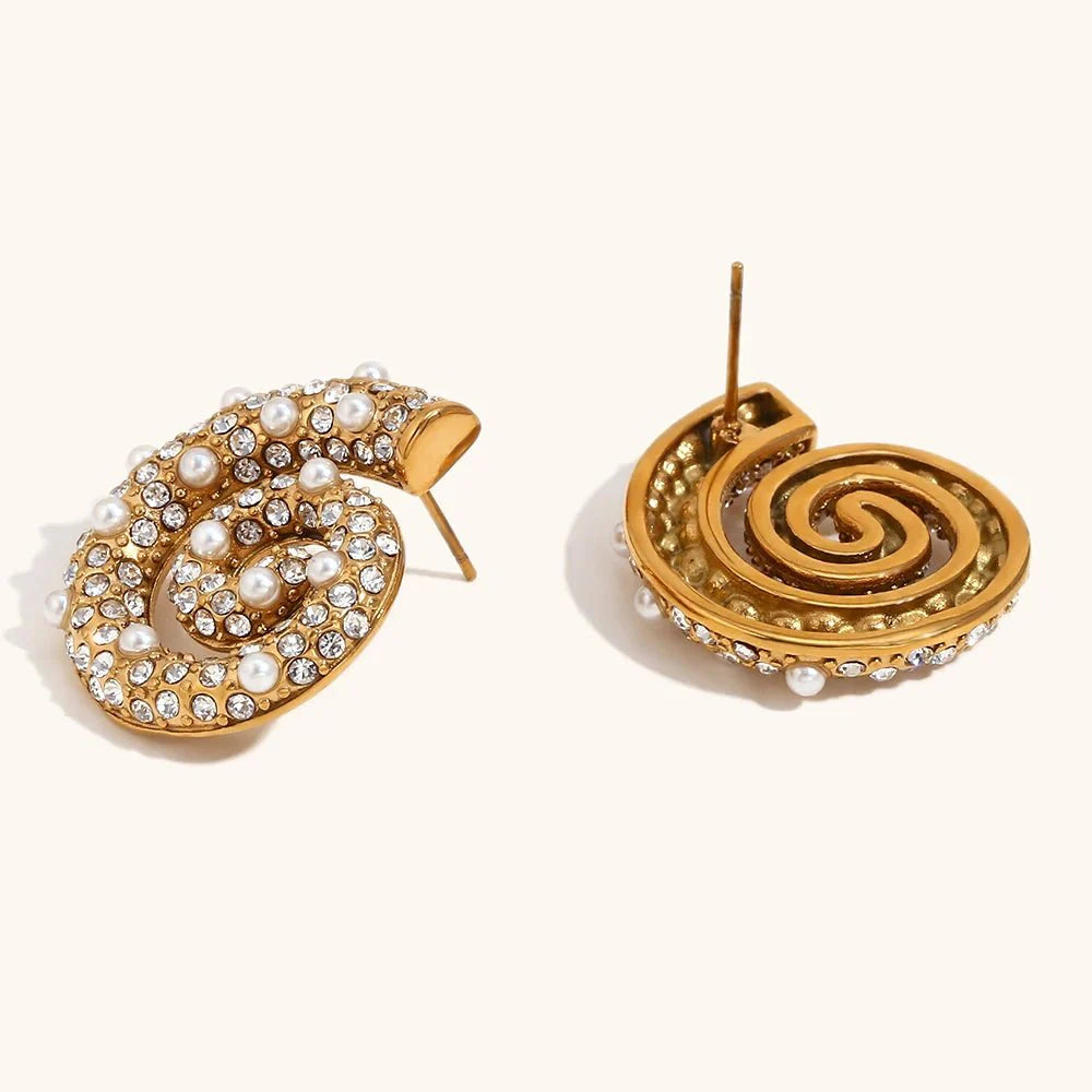 Step into sophistication with our Pearl Whirl Earrings. where classic pearls meet dazzling cubic zirconia in an artistic spiral design. Perfect for elevating any outfit. these earrings come in gold and silver tones. adding a touch of elegance and refinement to your jewelry collection.