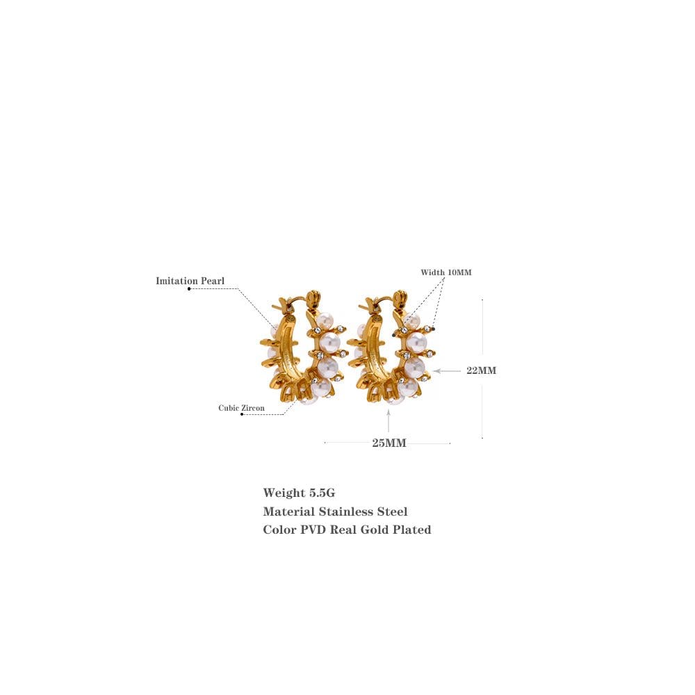 Stainless steel jewelry -Pearls Zircon Hoop Earrings