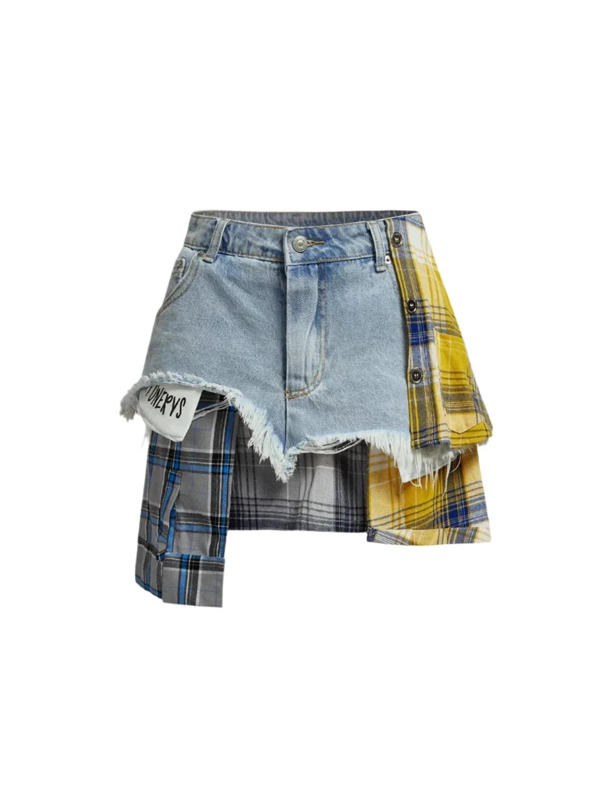Plaid mini skirt - No stretch real denim if you are in between sizes please size up - has shorts underneath.