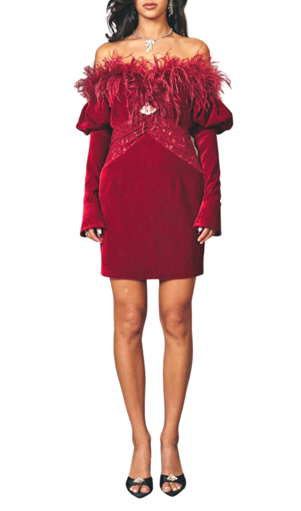 AWINTER favorite. This mini dress features transparent lace details and puff sleeves to give it a fun and fanciul edge. You'll want to wear the Velvet Dress again and again.