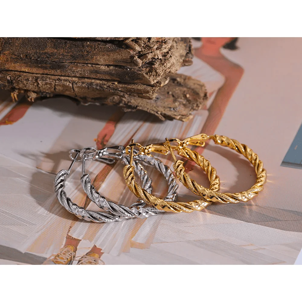 Elevate your accessory game with the Schoinion Hoop Earrings a stunning blend of classical elegance and modern sophistication. These hoops feature a unique twisted. rope-like design inspired by the intricate craftsmanship of ancient Mediterranean jewelry. Available in silver and gold. these earrings are your go-to for adding a touch of luxury to any outfit.