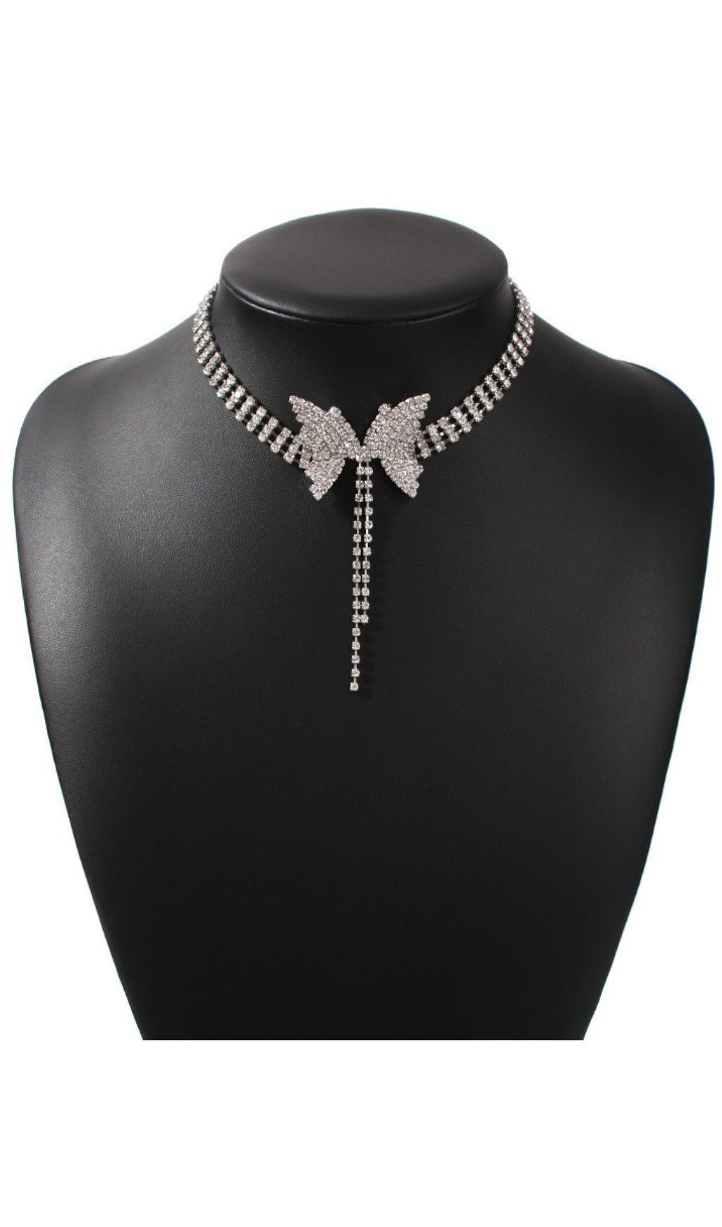 Nothing says "beauty with a bite" like this SILVER DIAMOND BUTTERFLY CHOKER! This eye-catching neck accessory features a stunning silver butterfly decorated with dazzling diamond accents. Be the life of the party with the perfect amount of sparkle and swagger!