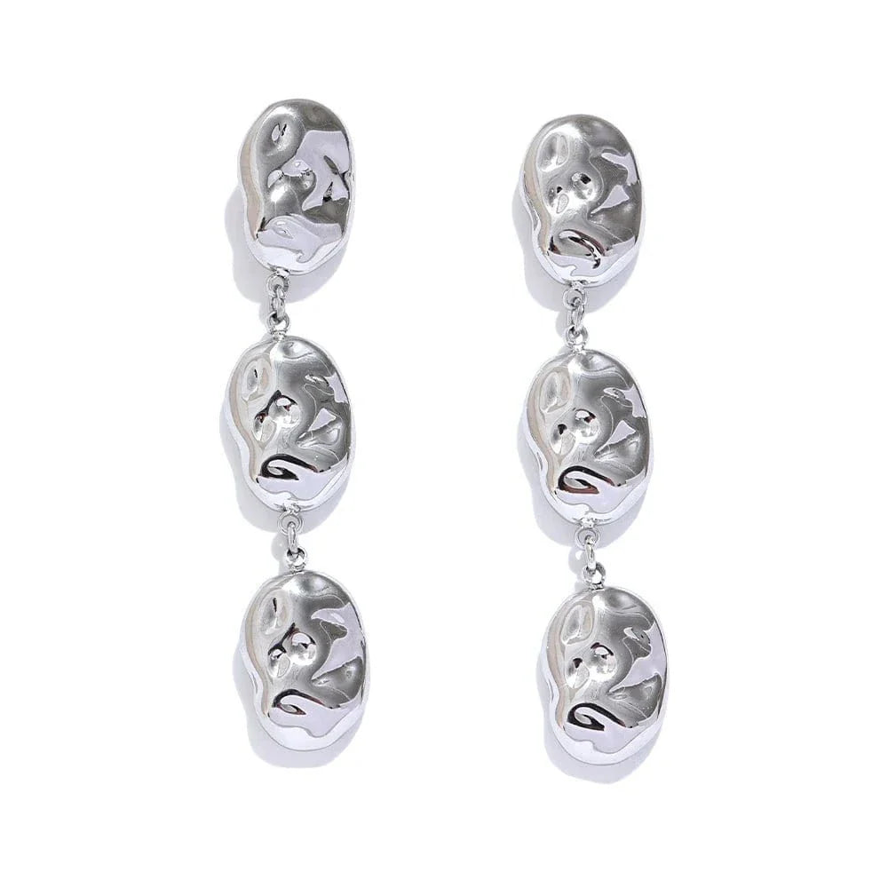 Change your look with our stunning Silver Hammered Drop Dangle Earrings. which combine classic workmanship with contemporary design. Each earring has a gently hammered texture that captures and reflects light. resulting in a faint shimmer with each movement.