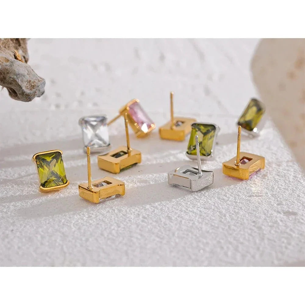 Each earring features a brilliant square-cut gemstone that captures the light from every angle. creating a dazzling display of sparkle. The clean. geometric lines of the square shape offer a modern twist on the classic stud design. making them a versatile addition to any jewelry collection.