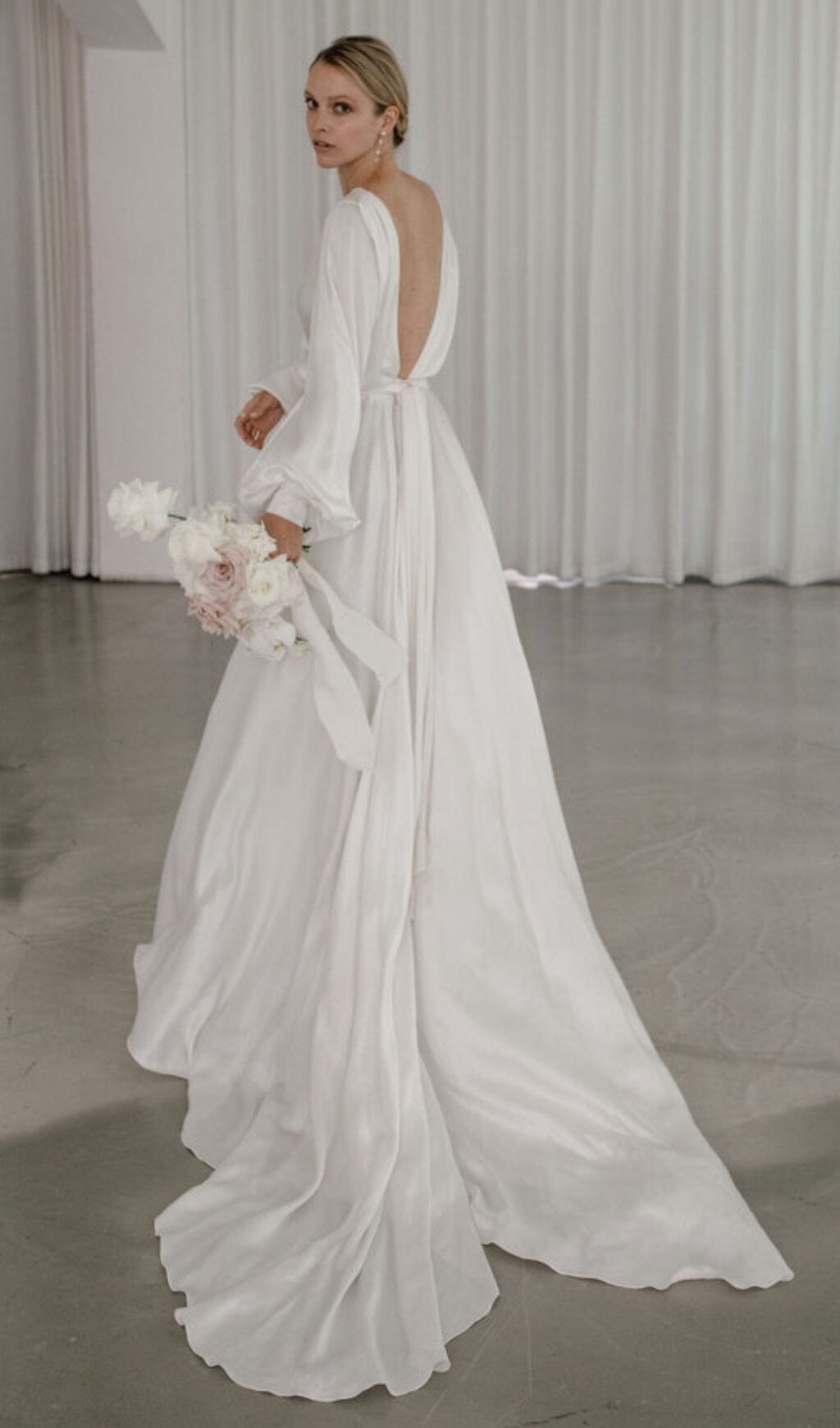 "Greek goddess" is the first impression of this dress. It is so elegant. If the big lantern sleeves fly with the wind while walking. it is very romantic. The hem of the tail lengthens the proportion of your lower body. making you look so tall. With the stacked chest design of deep V. it reveals your beautiful collarbone and put on it. Marry your favorite person at the resort!