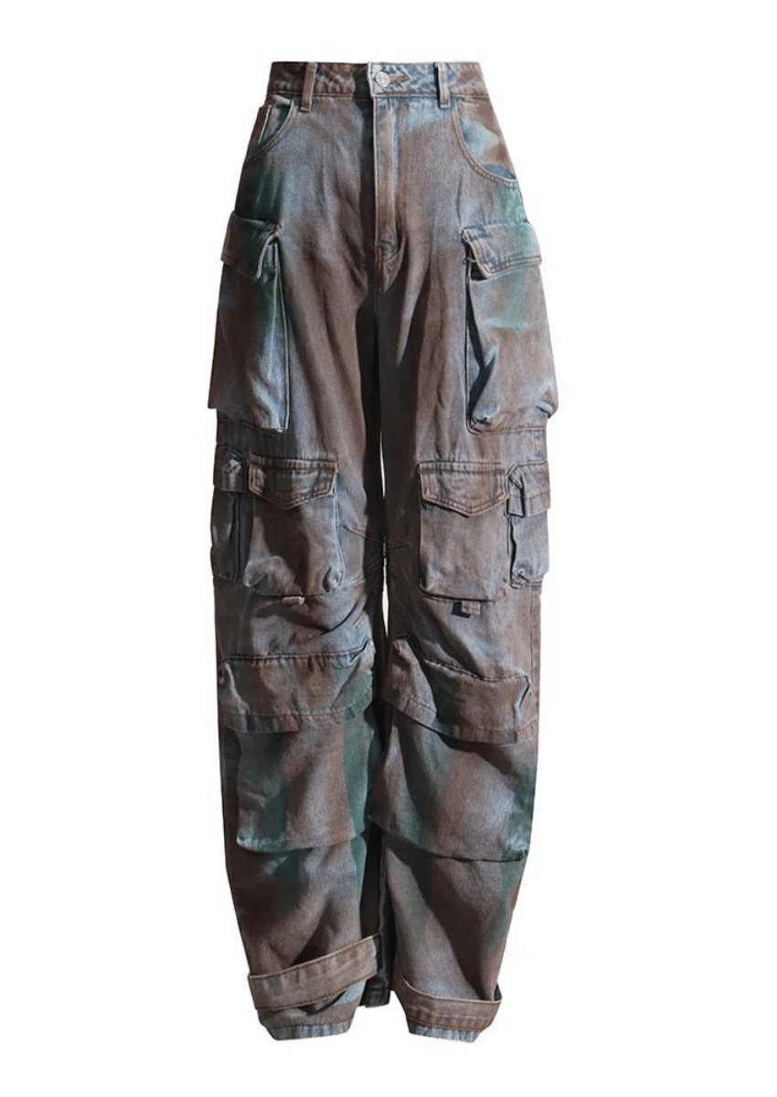 Effortlessly edgy and undeniably practical. the Stained-Inspired Cargo Pants bring rugged utility to your wardrobe with a fashion-forward twist. Perfect for adventurers. streetwear enthusiasts. or anyone seeking a versatile statement piece. these pants blend distressed aesthetics with functional design. The earthy brown and green tones lend a weathered charm. while durable construction ensures they're as reliable as they are stylish.