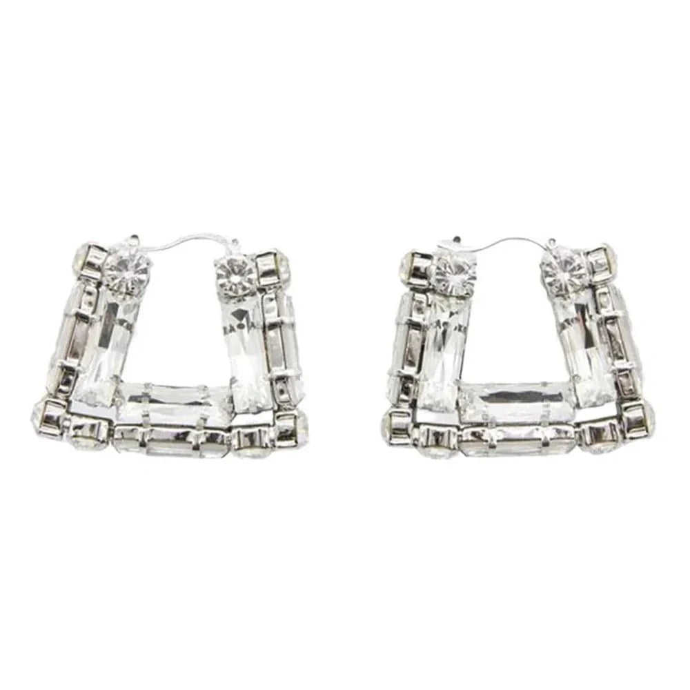 Statement Large Rhinestone Square Hoop Earrings Shiny Crystal Glamour for Weddings. Parties. and Fashion Events /strong>