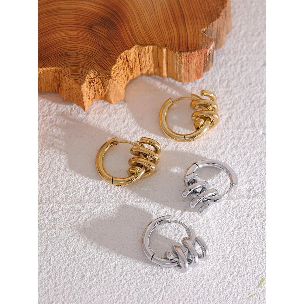 Elevate your style with the Swirls Hoop Earrings. a perfect blend of elegance and modern sophistication. Featuring a unique spiral twist design. these hoops add a touch of luxury to any outfit. Available in polished gold and silver. they offer a sleek. high-shine finish that makes them an essential statement piece. Crafted from premium stainless steel with PVD real gold plating. these earrings are durable. tarnish-resistant. and hypoallergenicerfect for everyday wear or special occasions.
