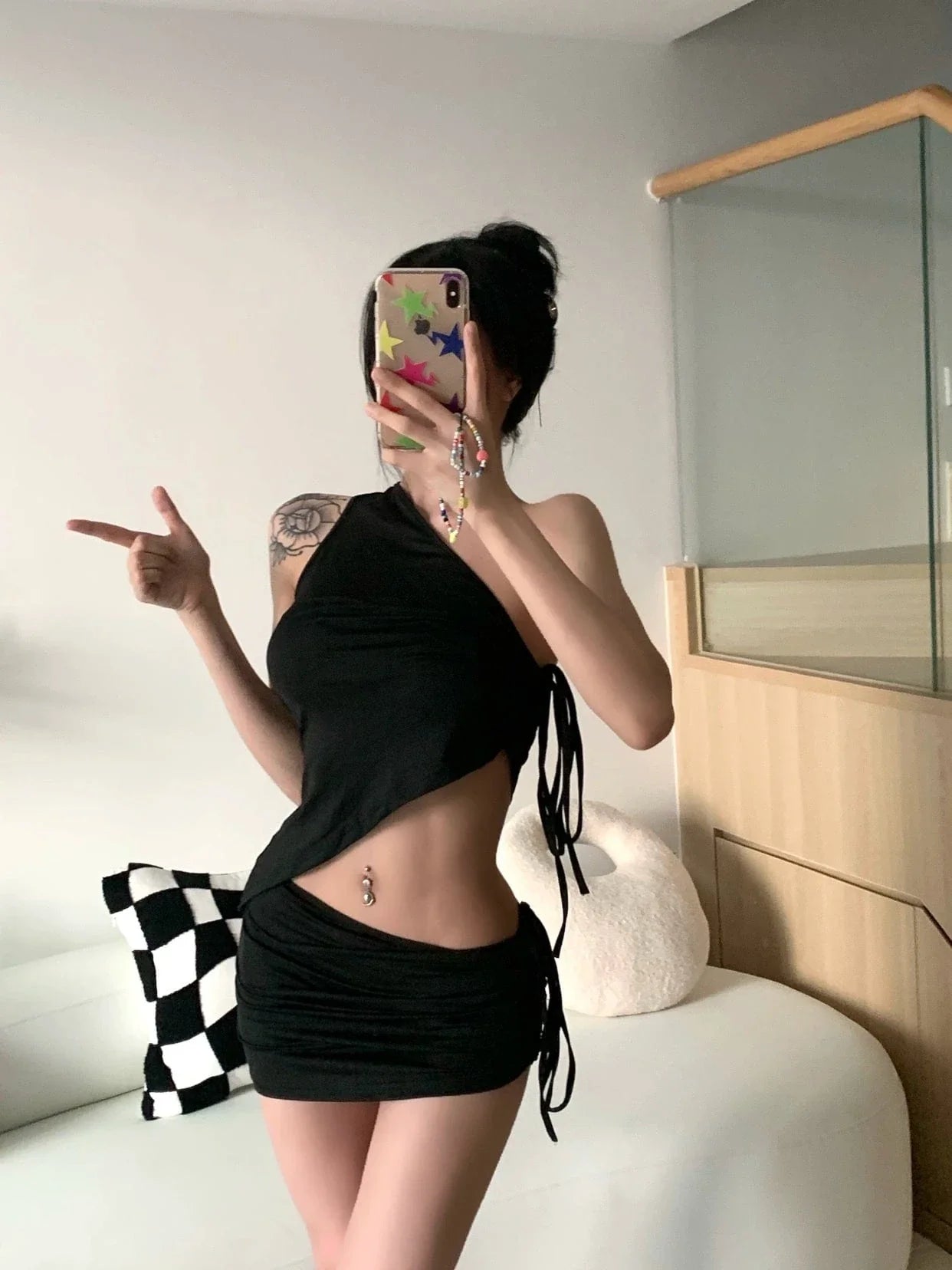 This set is your go-to choice. The elegant draping of the skirt paired with the bold lines of the top makes a statement on any occasion. It's ideal for art galleries. outdoor weddings. or even chic office settings. The set's adaptability allows you to mix and match with other pieces. giving you endless styling possibilities.