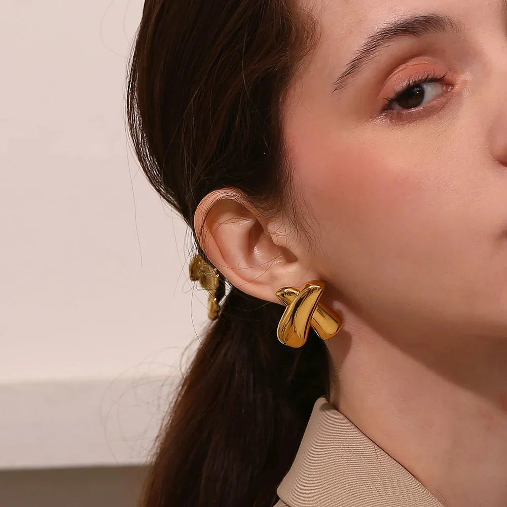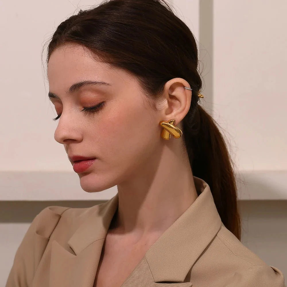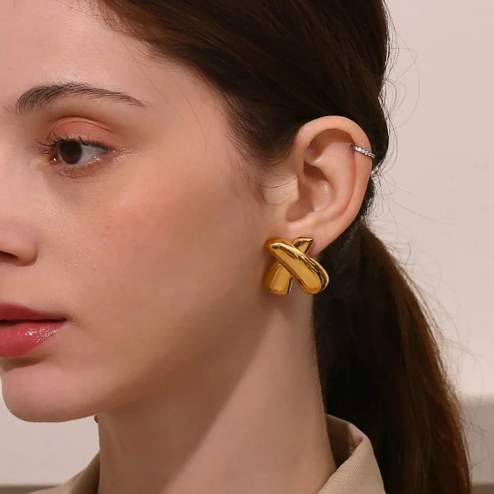 Make a bold yet understated statement with the X Stud Earrings. a perfect fusion of modern design and timeless elegance. Their abstract. cross-inspired shape symbolizes balance and style. making them an essential accessory for anyone who appreciates minimalist chic. Crafted with hypoallergenic materials and a waterproof finish. these earrings are as durable as they are fashionable.