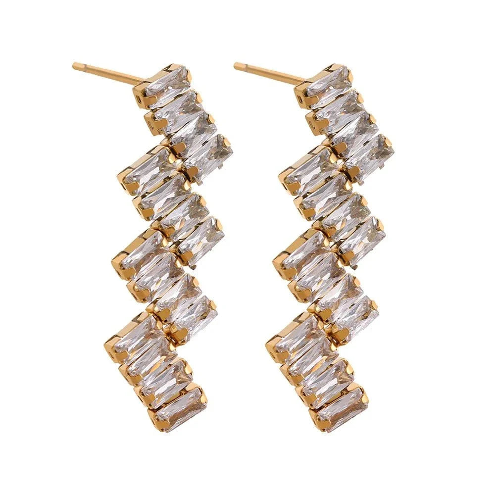 These earrings feature a unique zigzag pattern and a sleek rectangular shape. perfect for any occasion. The contemporary design adds a touch of flair to your look. Dress them up with a black dress or down with jeans and a t-shirt.