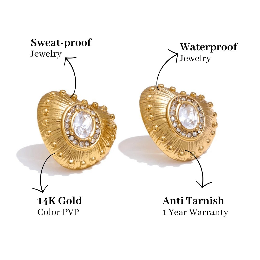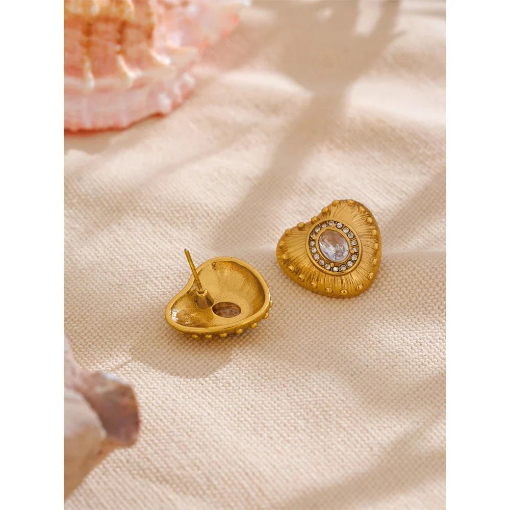 TheGolden Heart Stud Earrings are a beautiful symbol of love and elegance. Crafted from 316L stainless steel. these earrings are resistant to tarnish. ensuring they stay as beautiful as the day you got them. Each earring features a brilliant cubic zirconia stone. giving them just the right amount of sparkle. Perfect for women who love classic yet versatile jewelry. these earrings are the ideal addition to any collection.